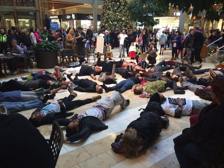 Black Lives Matter uses visual tactics such as light brigades and more theatrical “die-ins,” to convey an omnipresent threat of violence or death.